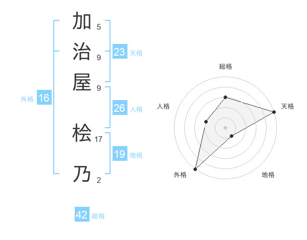 加治屋 桧乃さんを姓名の画数から五運を鑑定