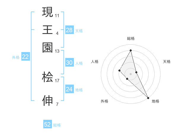現王園 桧伸さんを姓名の画数から五運を鑑定