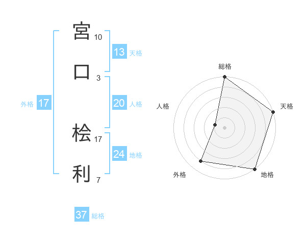 宮口 桧利さんを姓名の画数から五運を鑑定