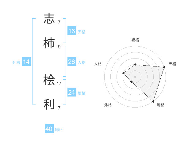 志柿 桧利さんを姓名の画数から五運を鑑定