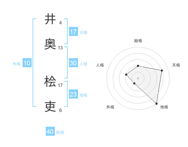 井奥 桧吏さんを姓名の画数から五運を鑑定