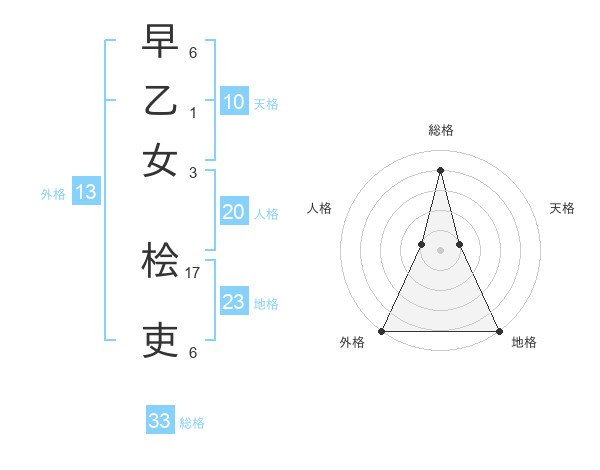 早乙女 桧吏さんを姓名の画数から五運を鑑定