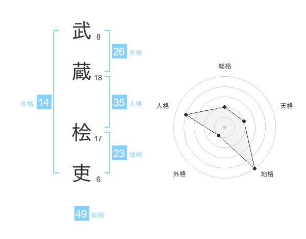 武蔵 桧吏さんを姓名の画数から五運を鑑定