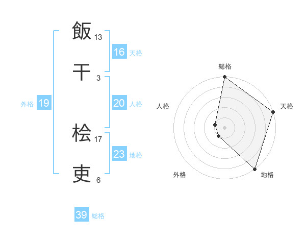 飯干 桧吏さんを姓名の画数から五運を鑑定