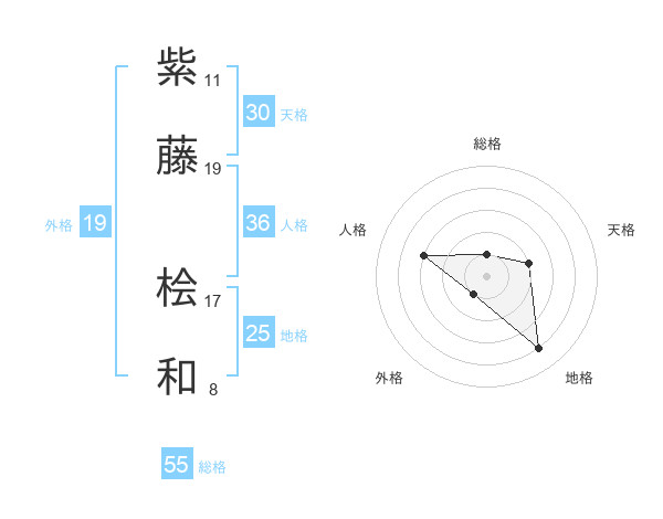 紫藤 桧和さんの総格は55画の1点!