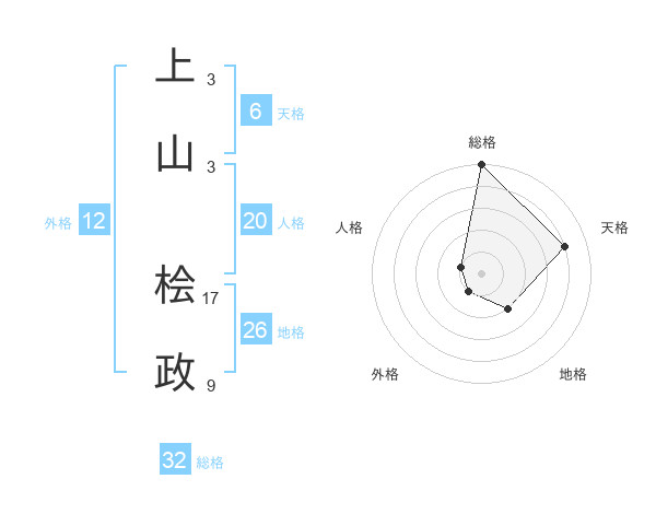 上山 桧政さんの総格は32画の5点!