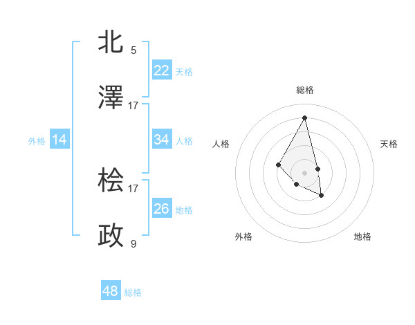 北澤 桧政さんの総格は48画の4点!