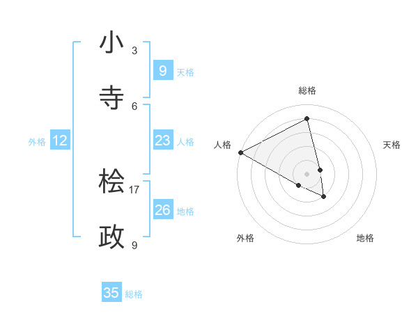 小寺 桧政さんの総格は35画の4点!