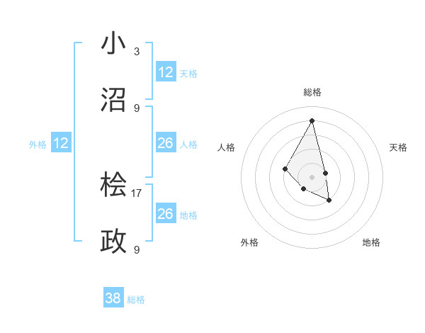 小沼 桧政さんを姓名の画数から五運を鑑定