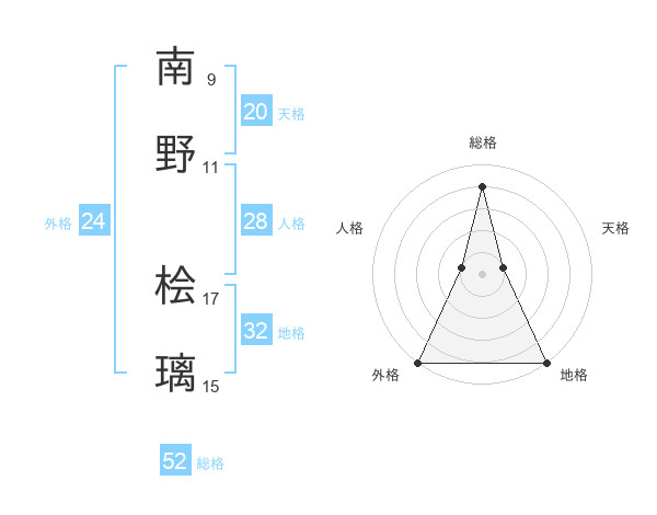 南野 桧璃さんの総格は52画の4点!