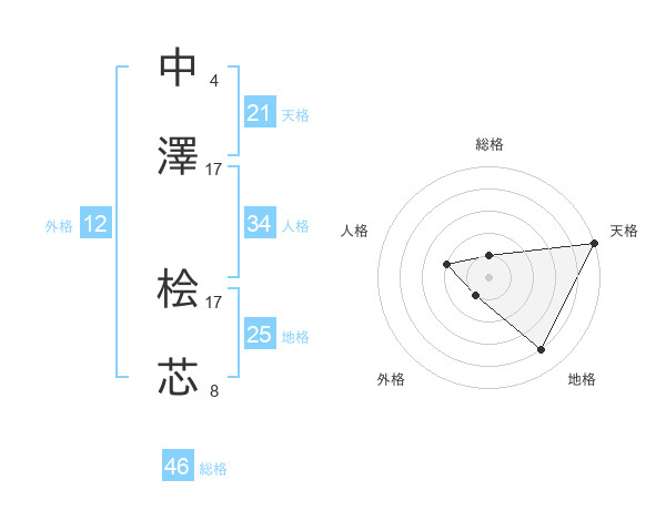 中澤 桧芯さんを姓名の画数から五運を鑑定