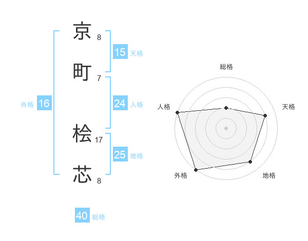 京町 桧芯さんの天格は15画の4点!