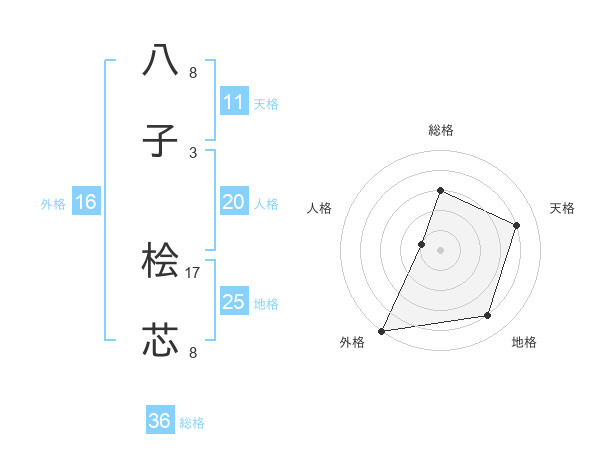 八子 桧芯さんを姓名の画数から五運を鑑定