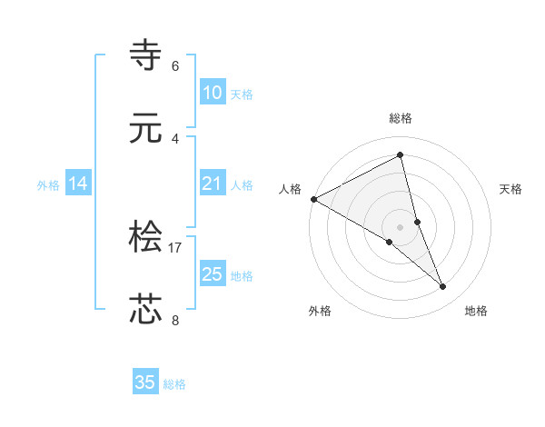 寺元 桧芯さんの総格は35画の4点!