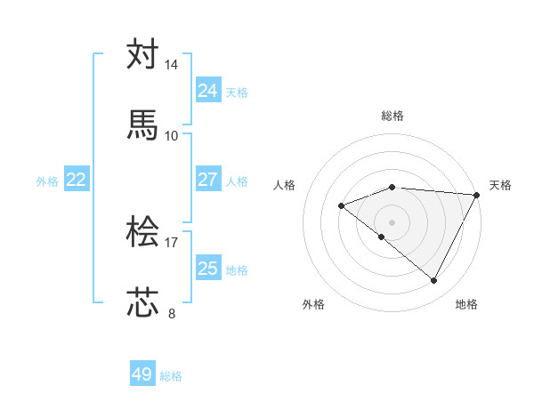 対馬 桧芯さんの天格は24画の5点!