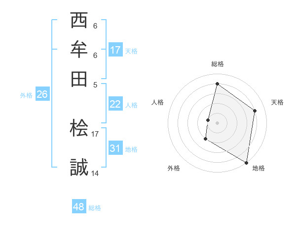 西牟田 桧誠さんを姓名の画数から五運を鑑定
