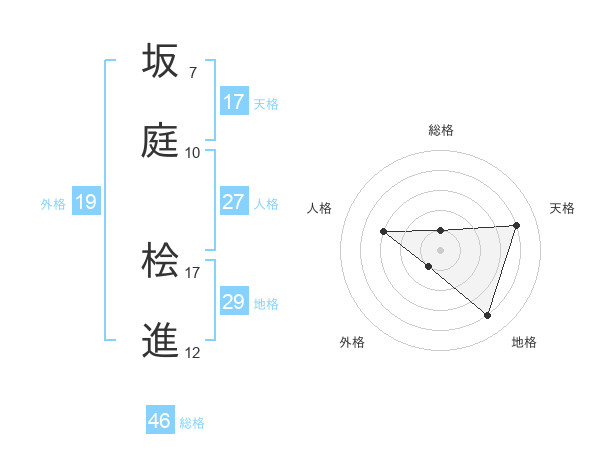 坂庭 桧進さんを姓名の画数から五運を鑑定