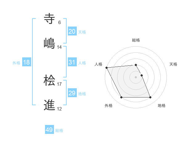 寺嶋 桧進さんを姓名の画数から五運を鑑定