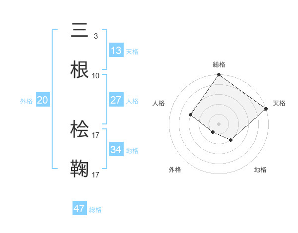 三根 桧鞠さんを姓名の画数から五運を鑑定