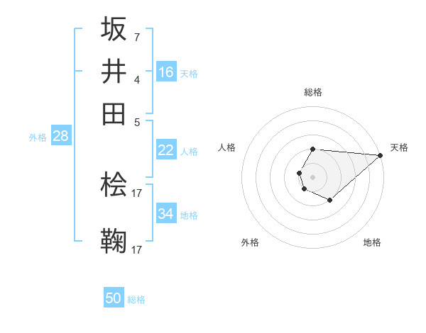 坂井田 桧鞠さんの総格は50画の2点!
