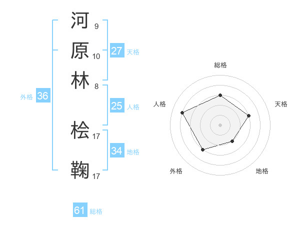 河原林 桧鞠さんを姓名の画数から五運を鑑定