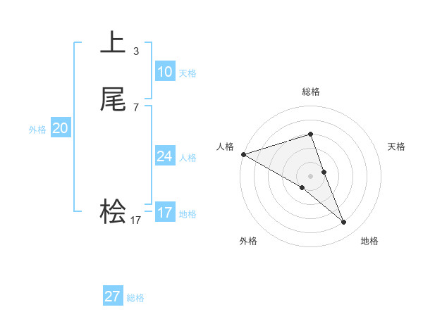 上尾 桧さんの総格は27画の3点!