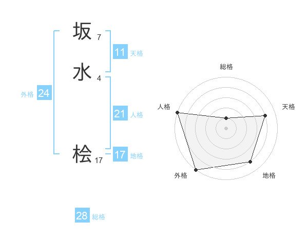 坂水 桧さんの外格は24画の5点!