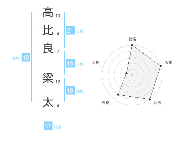 高比良 梁太さんの総格は37画の5点!