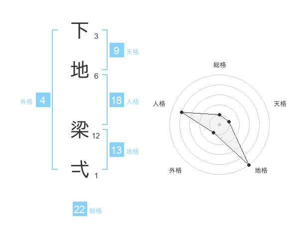 下地 梁弌さんを姓名の画数から五運を鑑定