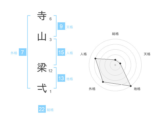 寺山 梁弌さんの総格は22画の1点!