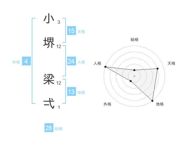 小堺 梁弌さんの総格は28画の1点!