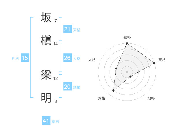 坂槇 梁明さんを姓名の画数から五運を鑑定