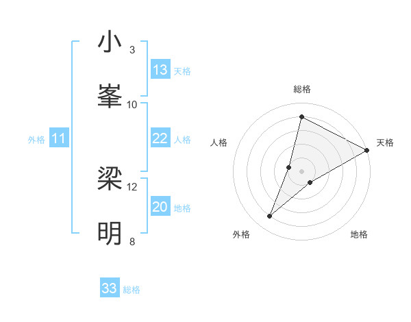 小峯 梁明さんの総格は33画の4点!