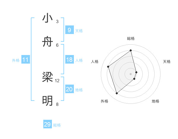 小舟 梁明さんの総格は29画の4点!