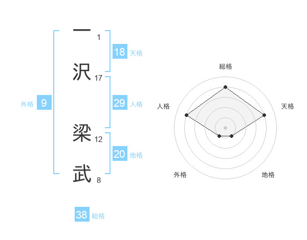 一沢 梁武さんの総格は38画の4点!