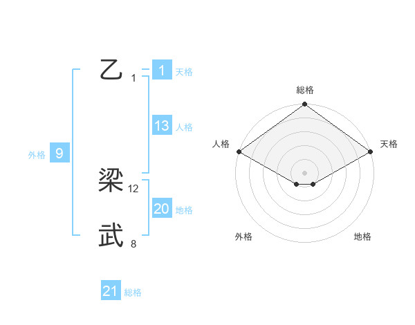 乙 梁武さんの総格は21画の5点!