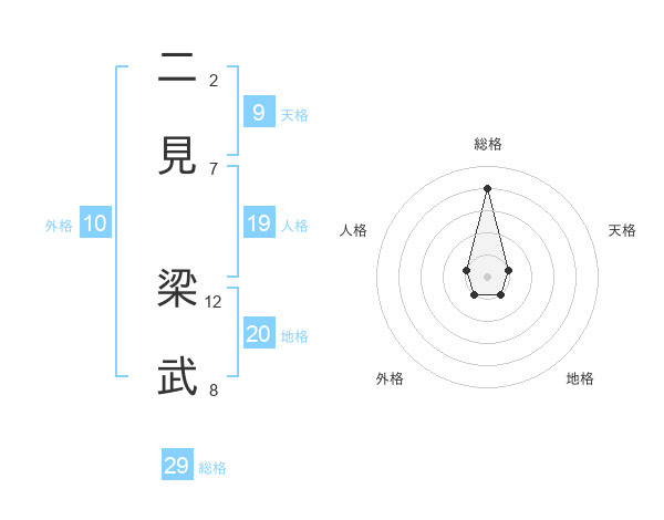 二見 梁武さんの総格は29画の4点!