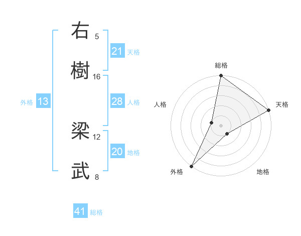 右樹 梁武さんの天格は21画の5点!
