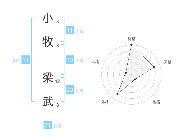 小牧 梁武さんを姓名の画数から五運を鑑定
