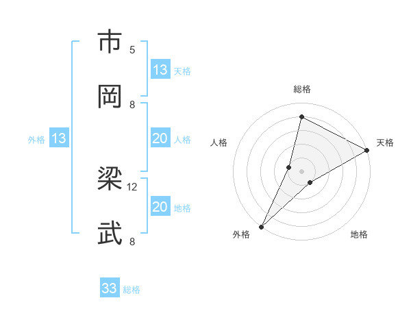 市岡 梁武さんを姓名の画数から五運を鑑定