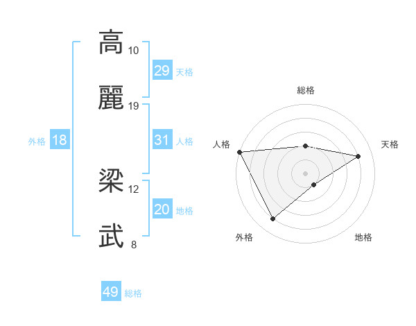 高麗 梁武さんの総格は49画の2点!
