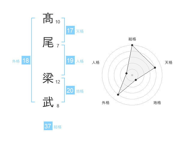 髙尾 梁武さんの総格は37画の5点!