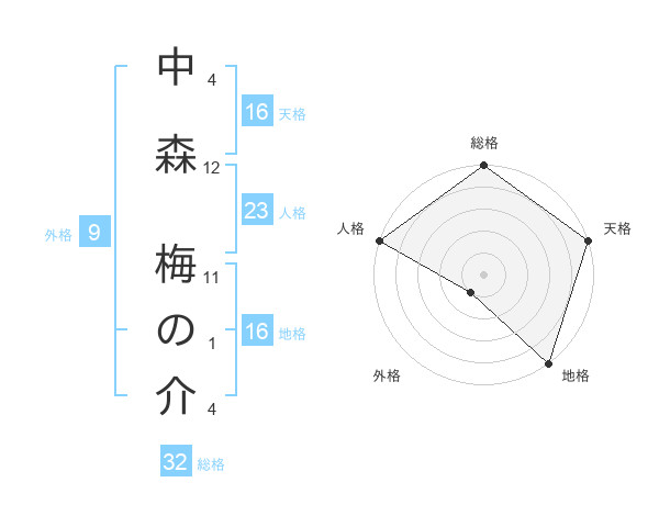 中森 梅の介さんを姓名の画数から五運を鑑定