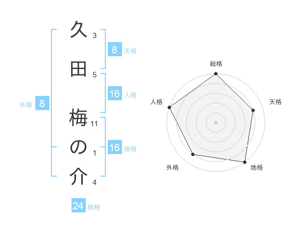 久田 梅の介さんを姓名の画数から五運を鑑定