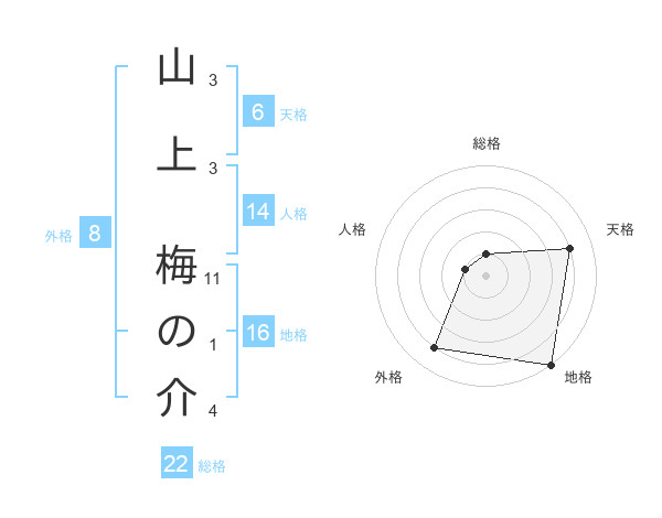 山上 梅の介さんを姓名の画数から五運を鑑定