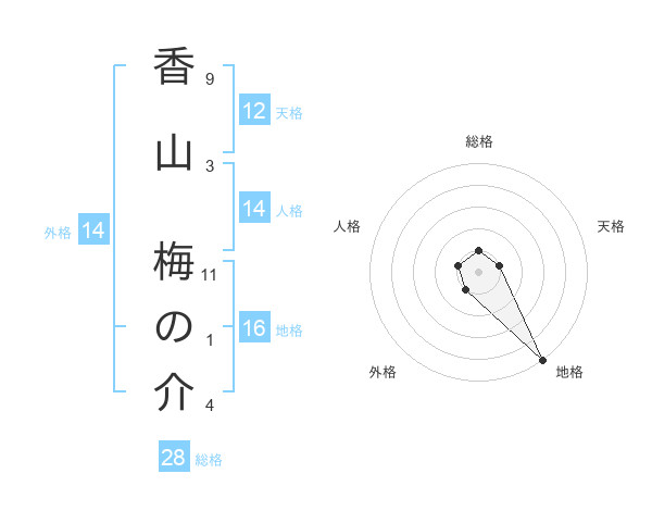 香山 梅の介さんを姓名の画数から五運を鑑定