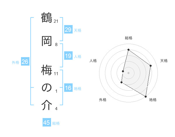 鶴岡 梅の介さんを姓名の画数から五運を鑑定