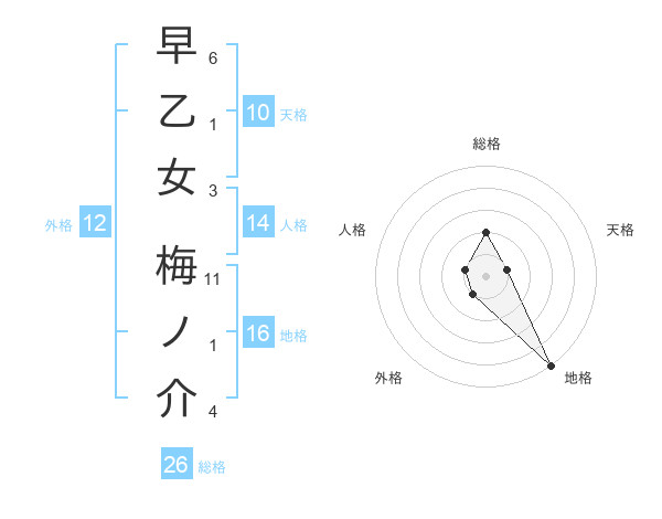 早乙女 梅ノ介さんを姓名の画数から五運を鑑定
