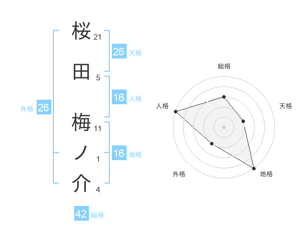 桜田 梅ノ介さんを姓名の画数から五運を鑑定