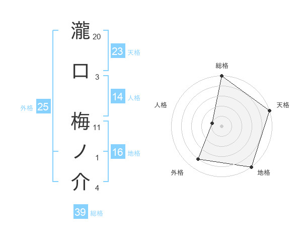 瀧口 梅ノ介さんの総格は39画の5点!